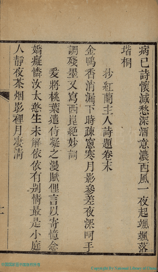 | (PRINT FRIENDLY VERSION) 蘭軒未訂稿: 初集一卷,二集一卷(清竇蘭軒撰)。清道光辛卯 (1831)平濼王氏刻本 ![]() 頁碼 : 二集.11a | 点 击 放 大 | 蘭軒未訂稿: 初集一卷,二集一卷(清竇蘭軒撰)。清道光辛卯 (1831)平濼王氏刻本![]() 頁碼 : 二集.10b | 点 击 放 大 | 返回 |