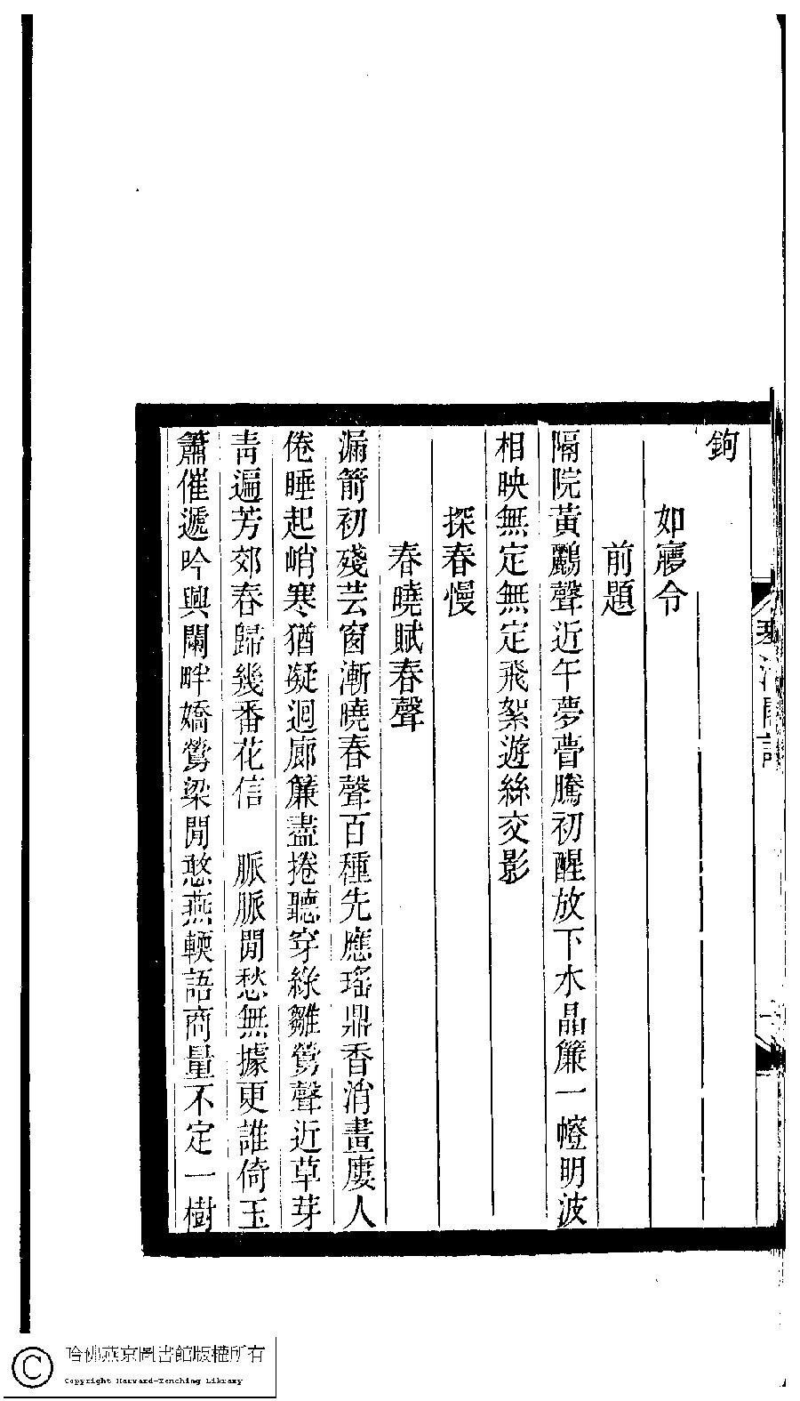 | 原書: 小檀欒室彙刻閨秀詞﹕十集一百種一百卷(清徐乃昌輯): 琴清閣詞﹕一卷 |