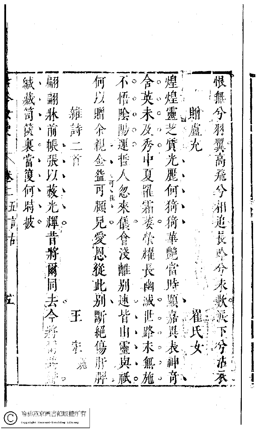 | (PRINT FRIENDLY VERSION) 古今女史﹕十二卷﹐詩集﹕八卷﹐附姓氏字里詳節﹕一卷(明趙世杰輯)。明崇禎(1628-1644)問奇閣刻本 ![]() 頁碼 : 2.5a | 点 击 放 大 | 古今女史﹕十二卷﹐詩集﹕八卷﹐附姓氏字里詳節﹕一卷(明趙世杰輯)。明崇禎(1628-1644)問奇閣刻本![]() 頁碼 : 2.4b | 点 击 放 大 | 返回 |