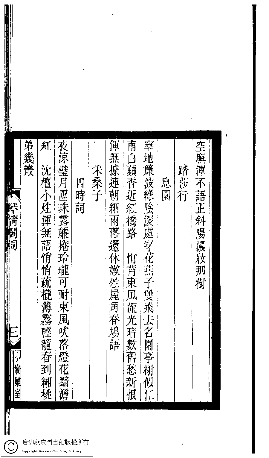 | 原書: 小檀欒室彙刻閨秀詞﹕十集一百種一百卷(清徐乃昌輯): 琴清閣詞﹕一卷 |