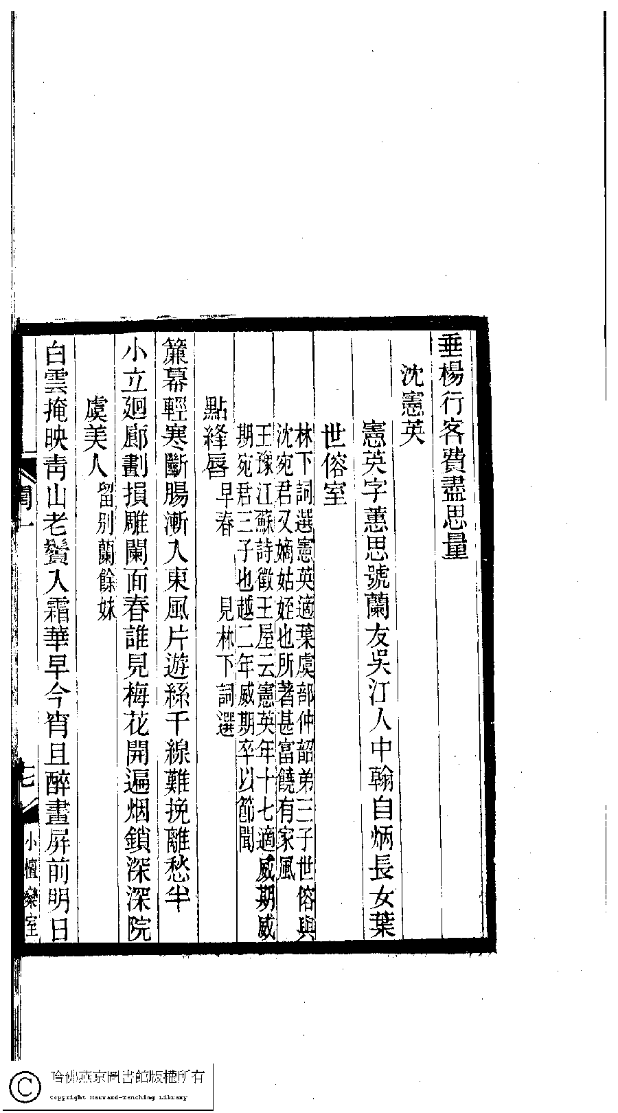 | (PRINT FRIENDLY VERSION) 閨秀詞鈔﹕十六卷(清徐乃昌輯)。清宣統元年(1909)小檀欒室刻本。 ![]() 頁碼 : 1.17a | 点 击 放 大 | 返回 |