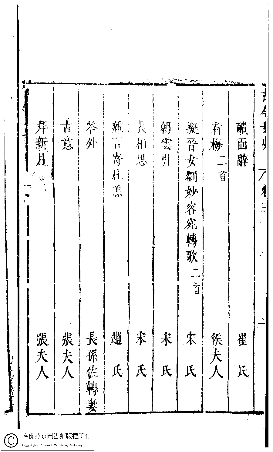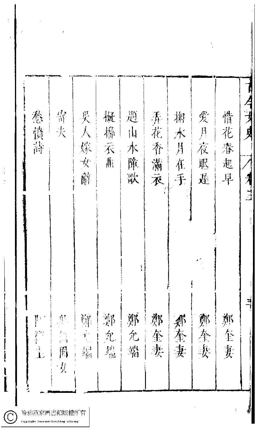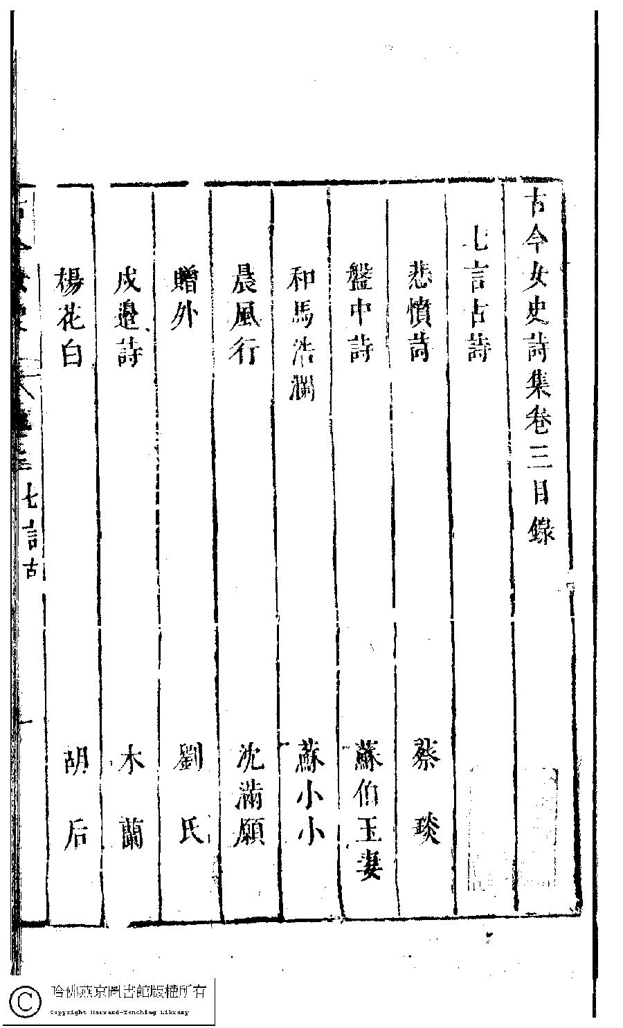 詩詞 [古今女史詩集卷三目錄]