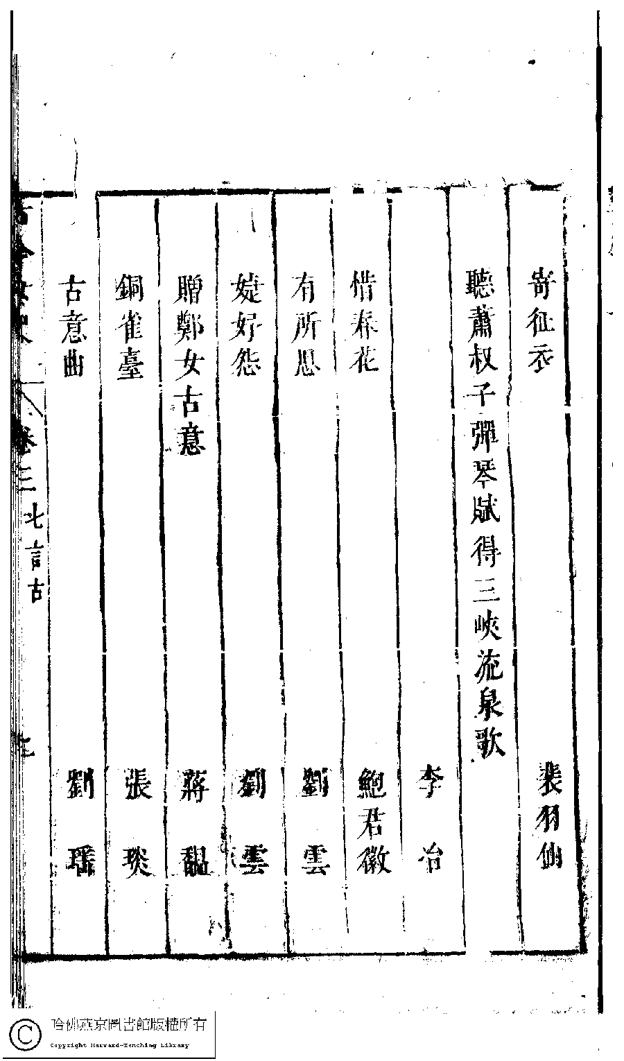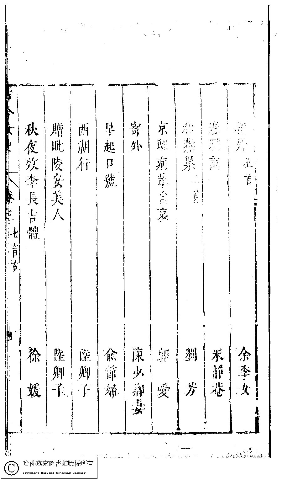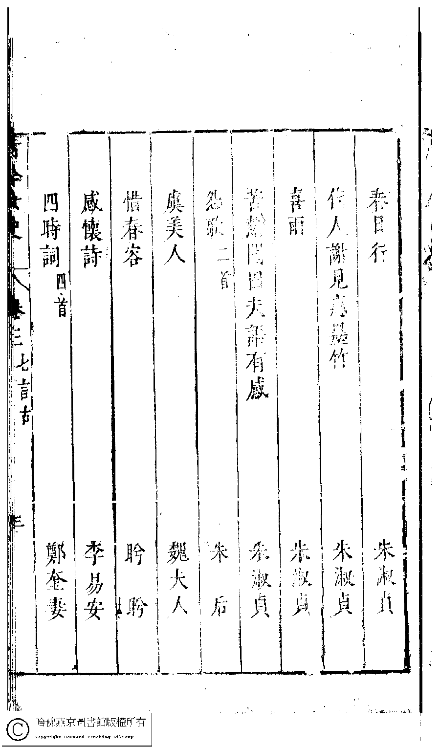 詩詞 [古今女史詩集卷三目錄]