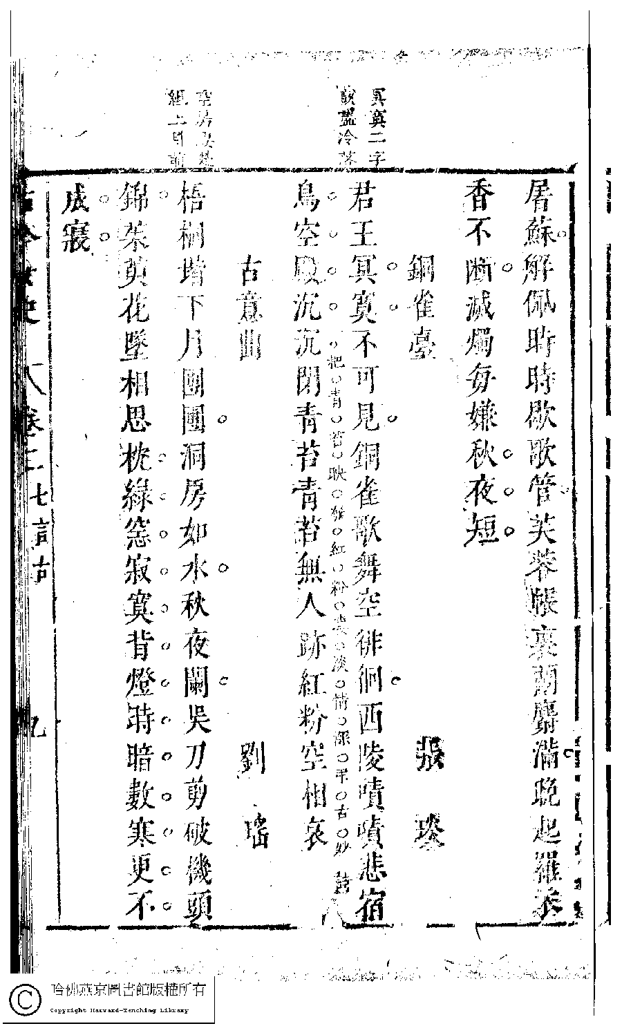 | (PRINT FRIENDLY VERSION) 古今女史﹕十二卷﹐詩集﹕八卷﹐附姓氏字里詳節﹕一卷(明趙世杰輯)。明崇禎(1628-1644)問奇閣刻本 ![]() 頁碼 : 3.9a | 点 击 放 大 | 古今女史﹕十二卷﹐詩集﹕八卷﹐附姓氏字里詳節﹕一卷(明趙世杰輯)。明崇禎(1628-1644)問奇閣刻本![]() 頁碼 : 3.8b | 点 击 放 大 | 返回 |