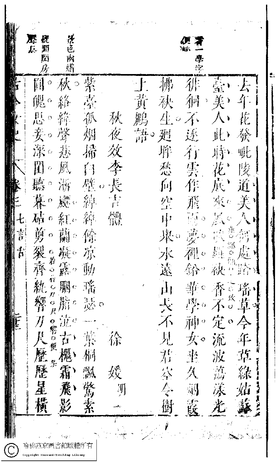 | (PRINT FRIENDLY VERSION) 古今女史﹕十二卷﹐詩集﹕八卷﹐附姓氏字里詳節﹕一卷(明趙世杰輯)。明崇禎(1628-1644)問奇閣刻本 ![]() 頁碼 : 3.23b | 点 击 放 大 | 古今女史﹕十二卷﹐詩集﹕八卷﹐附姓氏字里詳節﹕一卷(明趙世杰輯)。明崇禎(1628-1644)問奇閣刻本![]() 頁碼 : 3.23a | 点 击 放 大 | 返回 |