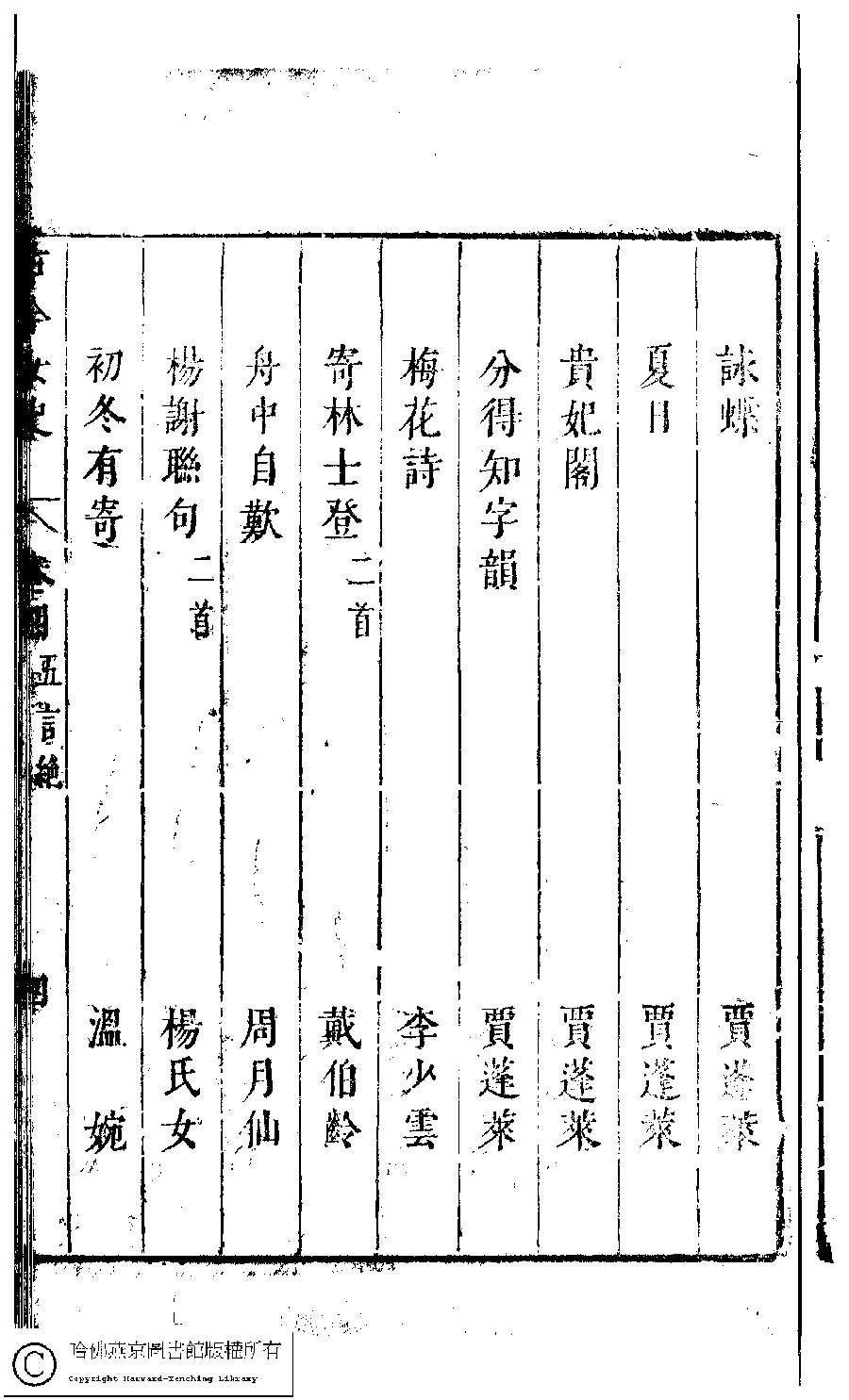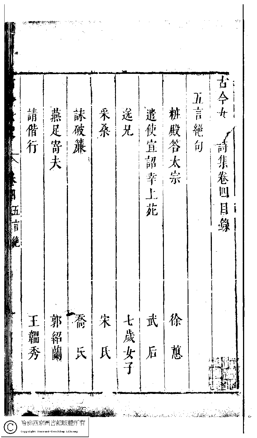 詩詞 [古今女史詩集卷四目錄]