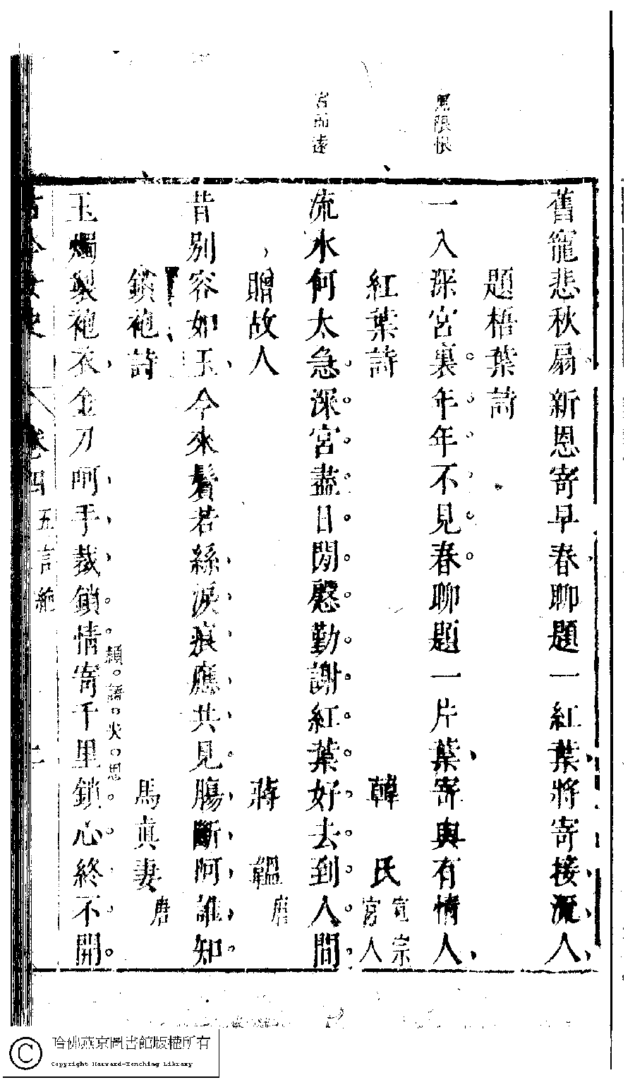 | (PRINT FRIENDLY VERSION) 古今女史﹕十二卷﹐詩集﹕八卷﹐附姓氏字里詳節﹕一卷(明趙世杰輯)。明崇禎(1628-1644)問奇閣刻本 ![]() 頁碼 : 4.2a | 点 击 放 大 | 返回 |