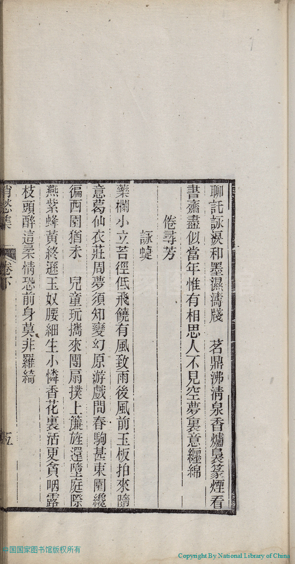 消愁集:二卷(清蔣英撰)。清光緒三十四年(1908)刻本