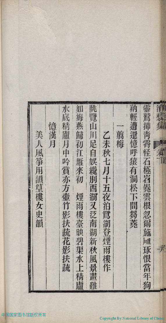 | (PRINT FRIENDLY VERSION) 消愁集:二卷(清蔣英撰)。清光緒三十四年(1908)刻本 ![]() 頁碼 : 2.10b | 点 击 放 大 | 消愁集:二卷(清蔣英撰)。清光緒三十四年(1908)刻本![]() 頁碼 : 2.10a | 点 击 放 大 | 返回 |