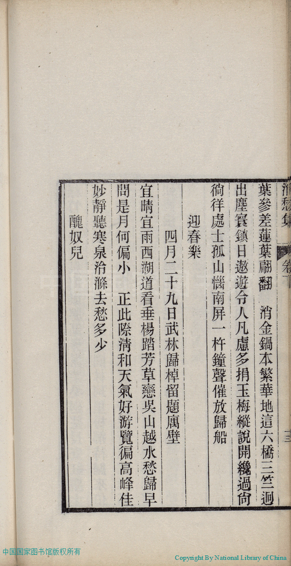 詩詞 [迎春樂 ﹕四月二十九日武林歸棹留題庽壁]
