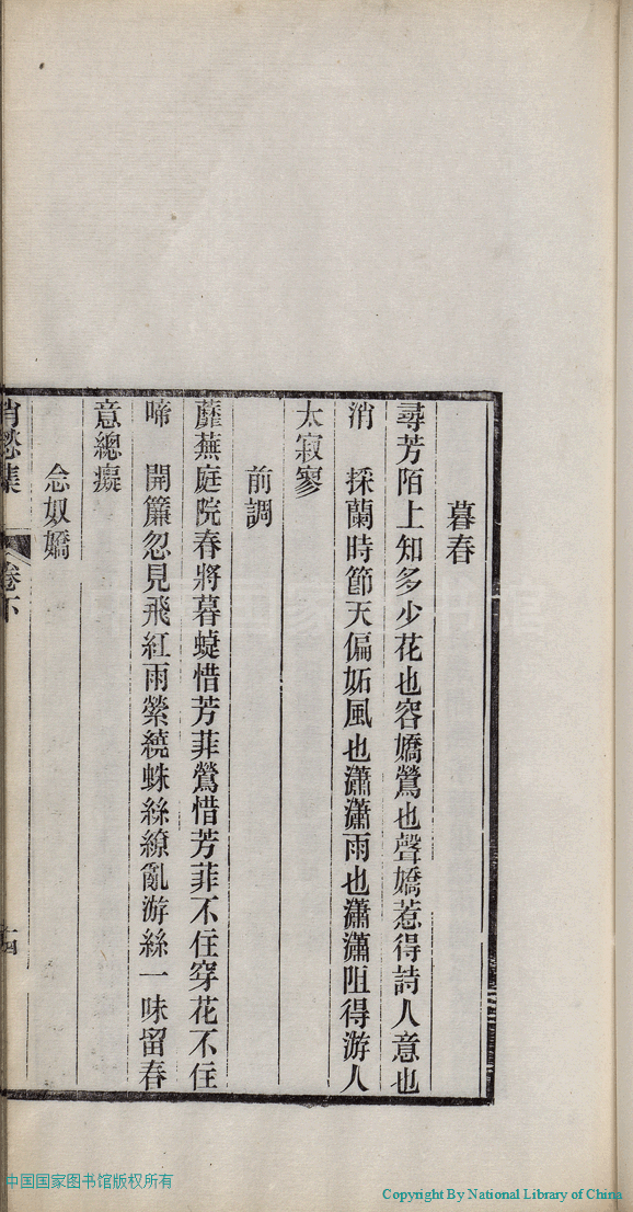 消愁集:二卷(清蔣英撰)。清光緒三十四年(1908)刻本