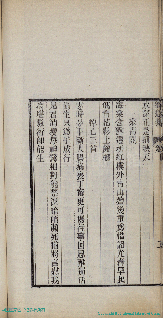 | (PRINT FRIENDLY VERSION) 消愁集:二卷(清蔣英撰)。清光緒三十四年(1908)刻本 ![]() 頁碼 : 附詩.2b | 点 击 放 大 | 返回 |