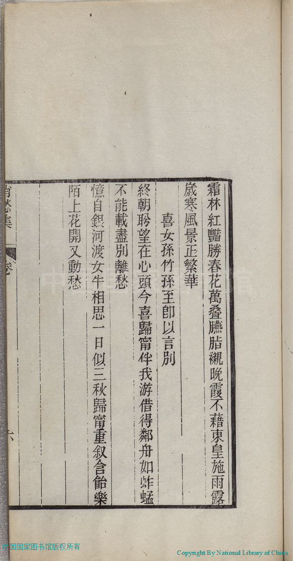 | (PRINT FRIENDLY VERSION) 消愁集:二卷(清蔣英撰)。清光緒三十四年(1908)刻本 ![]() 頁碼 : 附詩.6b | 点 击 放 大 | 消愁集:二卷(清蔣英撰)。清光緒三十四年(1908)刻本![]() 頁碼 : 附詩.6a | 点 击 放 大 | 返回 |
