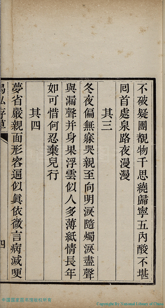 | (PRINT FRIENDLY VERSION) 烏私存草:一卷(清佟佳氏撰)。清乾隆四十一年(1776)刻本 ![]() 頁碼 : 存草.4a | 点 击 放 大 | 烏私存草:一卷(清佟佳氏撰)。清乾隆四十一年(1776)刻本![]() 頁碼 : 存草.3b | 点 击 放 大 | 返回 |