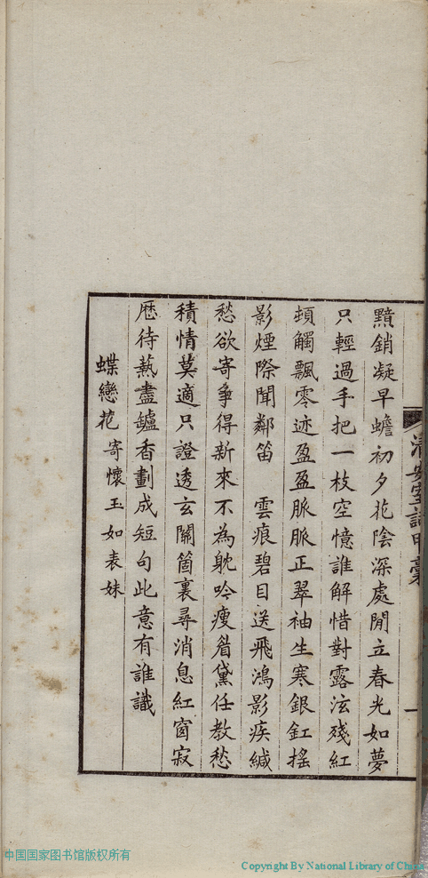| (PRINT FRIENDLY VERSION) 清安室詞:二卷(清張清揚撰)。民國十年(1921)福州刻本 ![]() 頁碼 : 甲稿.1b | 点 击 放 大 | 清安室詞:二卷(清張清揚撰)。民國十年(1921)福州刻本![]() 頁碼 : 甲稿.1a | 点 击 放 大 | 返回 |