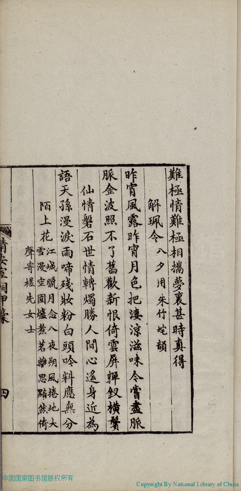 | (PRINT FRIENDLY VERSION) 清安室詞:二卷(清張清揚撰)。民國十年(1921)福州刻本 ![]() 頁碼 : 甲稿.4b | 点 击 放 大 | 清安室詞:二卷(清張清揚撰)。民國十年(1921)福州刻本![]() 頁碼 : 甲稿.4a | 点 击 放 大 | 返回 |