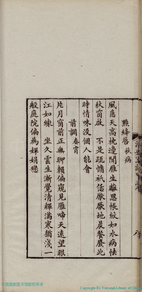 | (PRINT FRIENDLY VERSION) 清安室詞:二卷(清張清揚撰)。民國十年(1921)福州刻本 ![]() 頁碼 : 甲稿.8b | 点 击 放 大 | 返回 |