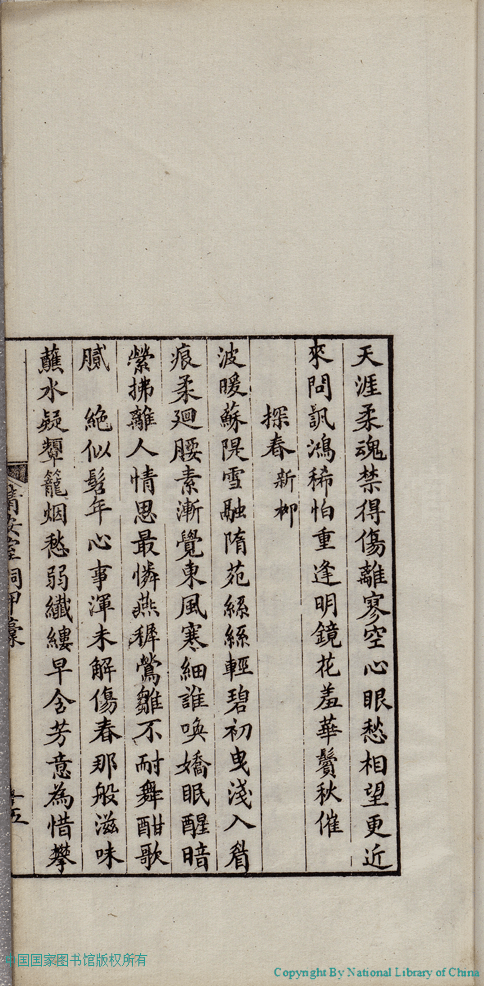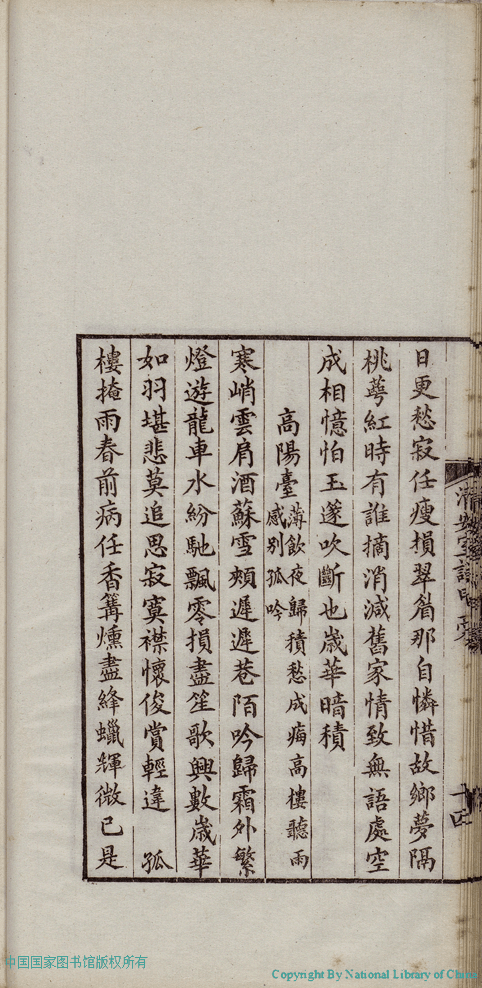 | (PRINT FRIENDLY VERSION) 清安室詞:二卷(清張清揚撰)。民國十年(1921)福州刻本 ![]() 頁碼 : 甲稿.15a | 点 击 放 大 | 清安室詞:二卷(清張清揚撰)。民國十年(1921)福州刻本![]() 頁碼 : 甲稿.14b | 点 击 放 大 | 返回 |