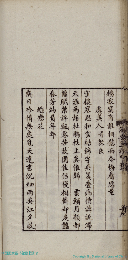 | (PRINT FRIENDLY VERSION) 清安室詞:二卷(清張清揚撰)。民國十年(1921)福州刻本 ![]() 頁碼 : 甲稿.20a | 点 击 放 大 | 清安室詞:二卷(清張清揚撰)。民國十年(1921)福州刻本![]() 頁碼 : 甲稿.19b | 点 击 放 大 | 返回 |