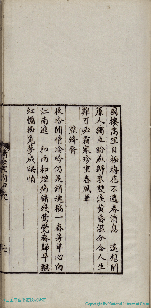 | (PRINT FRIENDLY VERSION) 清安室詞:二卷(清張清揚撰)。民國十年(1921)福州刻本 ![]() 頁碼 : 甲稿.20b | 点 击 放 大 | 清安室詞:二卷(清張清揚撰)。民國十年(1921)福州刻本![]() 頁碼 : 甲稿.20a | 点 击 放 大 | 返回 |