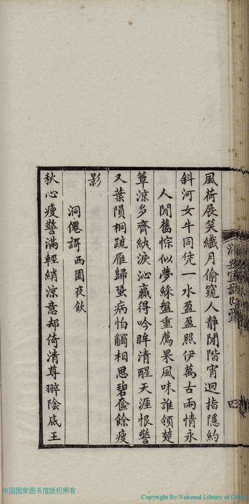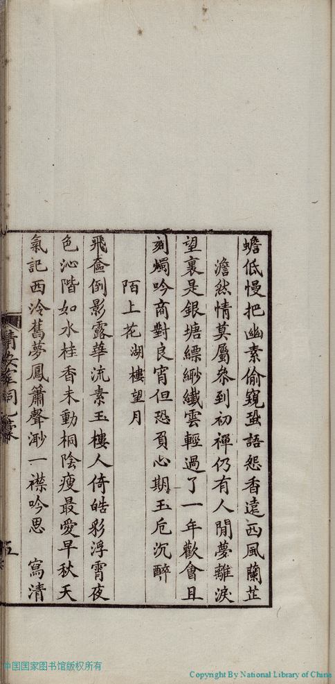 | (PRINT FRIENDLY VERSION) 清安室詞:二卷(清張清揚撰)。民國十年(1921)福州刻本 ![]() 頁碼 : 乙稿.5a | 点 击 放 大 | 清安室詞:二卷(清張清揚撰)。民國十年(1921)福州刻本![]() 頁碼 : 乙稿.4b | 点 击 放 大 | 返回 |