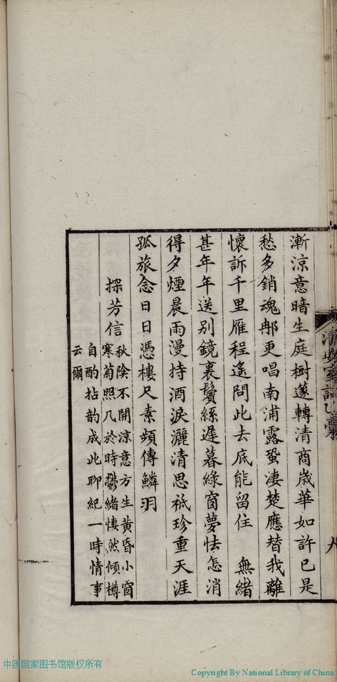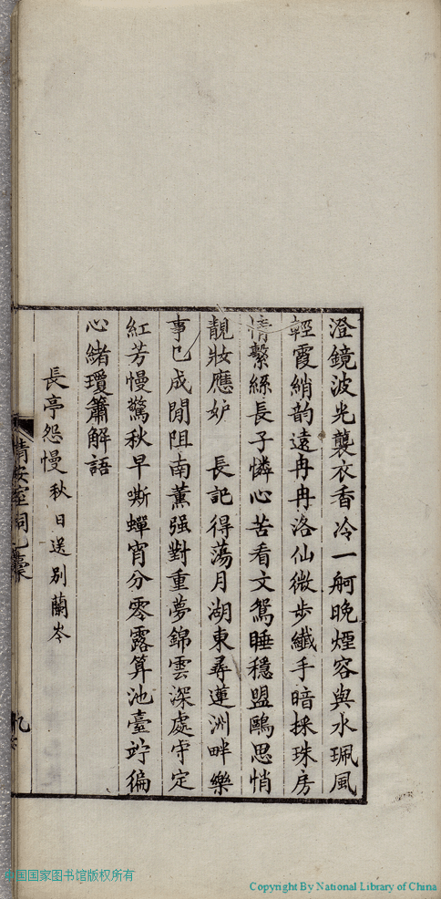 | (PRINT FRIENDLY VERSION) 清安室詞:二卷(清張清揚撰)。民國十年(1921)福州刻本 ![]() 頁碼 : 乙稿.9b | 点 击 放 大 | 清安室詞:二卷(清張清揚撰)。民國十年(1921)福州刻本![]() 頁碼 : 乙稿.9a | 点 击 放 大 | 返回 |