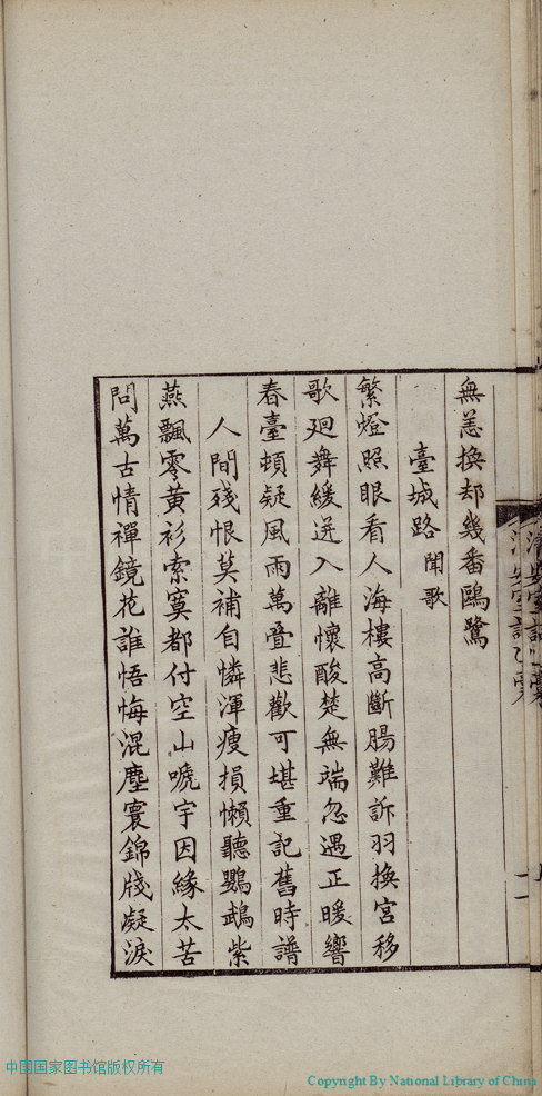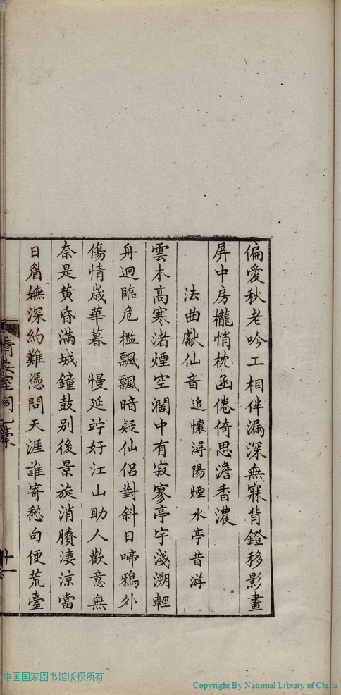 | (PRINT FRIENDLY VERSION) 清安室詞:二卷(清張清揚撰)。民國十年(1921)福州刻本 ![]() 頁碼 : 乙稿.11b | 点 击 放 大 | 清安室詞:二卷(清張清揚撰)。民國十年(1921)福州刻本![]() 頁碼 : 乙稿.11a | 点 击 放 大 | 返回 |