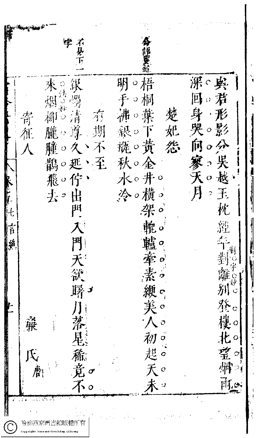 | (PRINT FRIENDLY VERSION) 古今女史﹕十二卷﹐詩集﹕八卷﹐附姓氏字里詳節﹕一卷(明趙世杰輯)。明崇禎(1628-1644)問奇閣刻本 ![]() 頁碼 : 5.11a | 点 击 放 大 | 古今女史﹕十二卷﹐詩集﹕八卷﹐附姓氏字里詳節﹕一卷(明趙世杰輯)。明崇禎(1628-1644)問奇閣刻本![]() 頁碼 : 5.10b | 点 击 放 大 | 返回 |