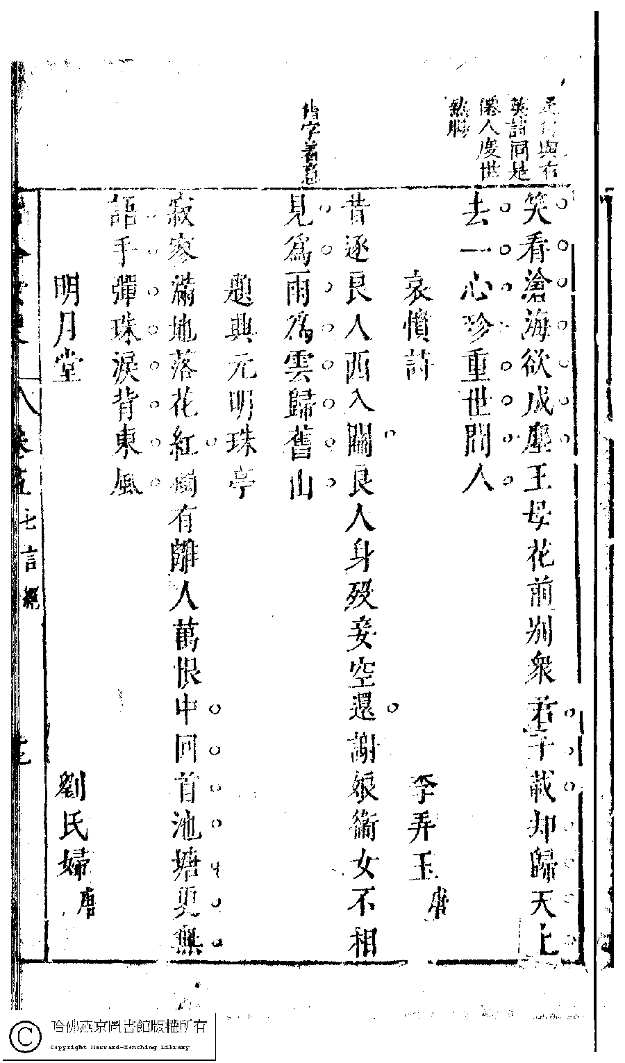 | (PRINT FRIENDLY VERSION) 古今女史﹕十二卷﹐詩集﹕八卷﹐附姓氏字里詳節﹕一卷(明趙世杰輯)。明崇禎(1628-1644)問奇閣刻本 ![]() 頁碼 : 5.12a | 点 击 放 大 | 返回 |