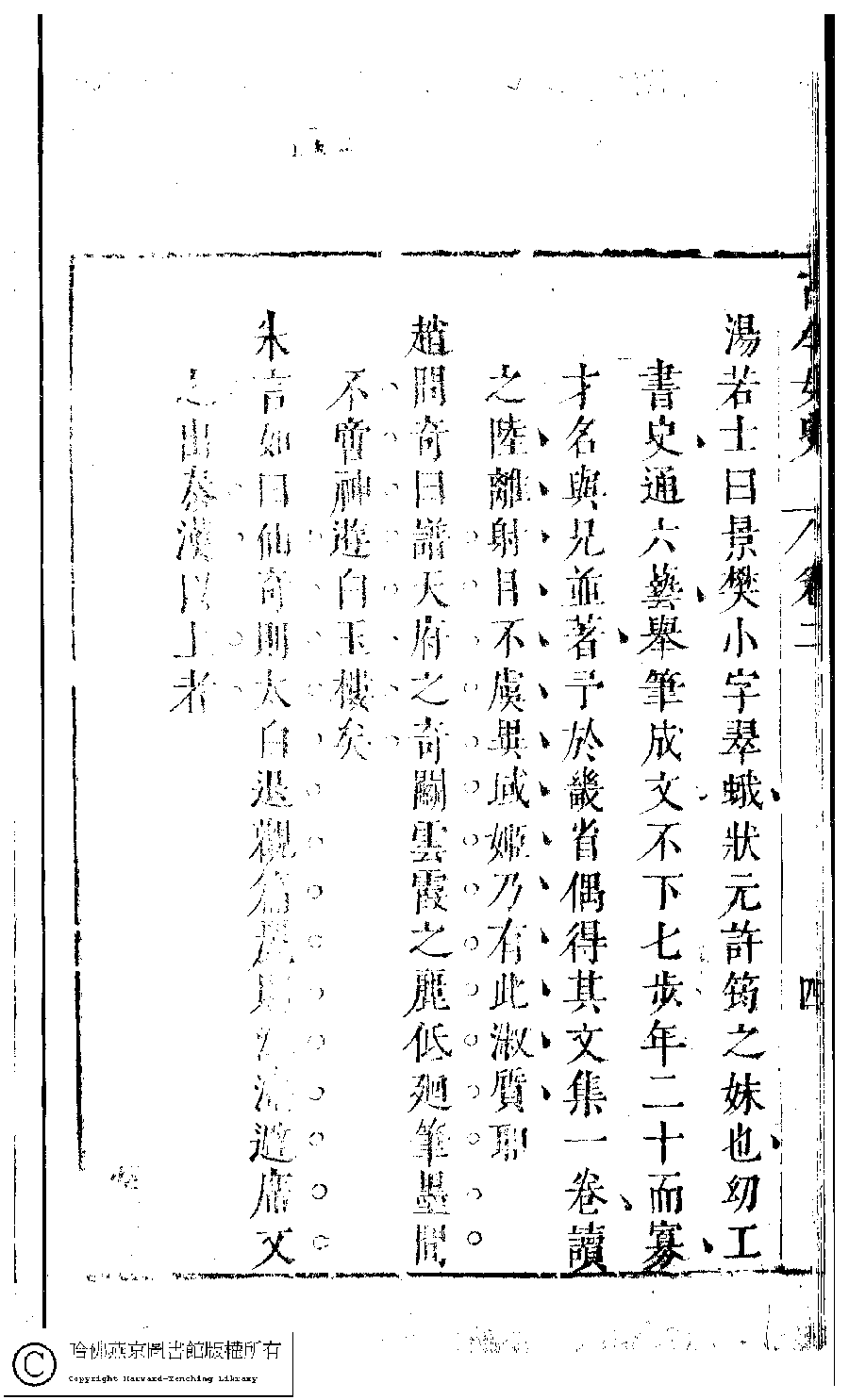 | (PRINT FRIENDLY VERSION) 古今女史﹕十二卷﹐詩集﹕八卷﹐附姓氏字里詳節﹕一卷(明趙世杰輯)。明崇禎(1628-1644)問奇閣刻本 ![]() 頁碼 : 2.4b | 点 击 放 大 | 返回 |