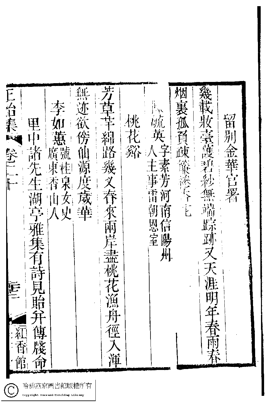 | 原書: 國朝閨秀正始集﹕二十卷﹐附錄﹕一卷﹐補遺﹕一卷﹐又附題詞﹕一卷(清惲珠輯) |