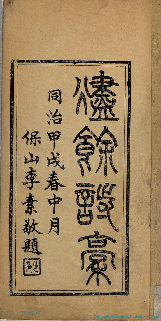 燼餘詩稿:一卷(清徐清華撰)。清同治十三年(1874)刻本