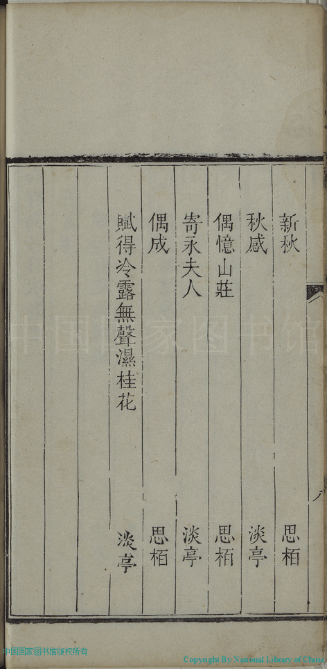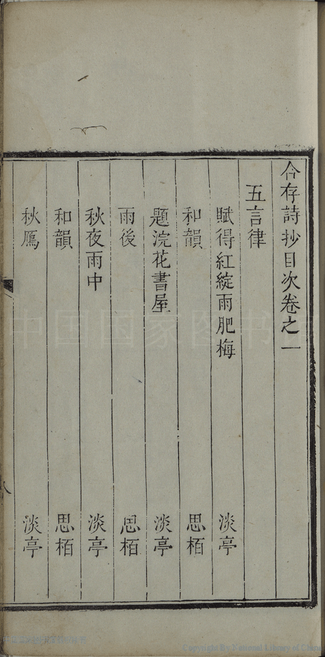 | (PRINT FRIENDLY VERSION) 合存詩抄:三卷(清宮淡亭,思栢撰) 。清乾隆間(1736-1795)刻本 ![]() 頁碼 : 目次卷之一.1b | 点 击 放 大 | 合存詩抄:三卷(清宮淡亭,思栢撰) 。清乾隆間(1736-1795)刻本 ![]() 頁碼 : 目次卷之一.1a | 点 击 放 大 | 返回 |