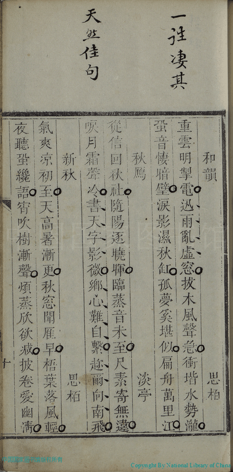 | (PRINT FRIENDLY VERSION) 合存詩抄:三卷(清宮淡亭,思栢撰) 。清乾隆間(1736-1795)刻本 ![]() 頁碼 : 1.2a | 点 击 放 大 | 返回 |