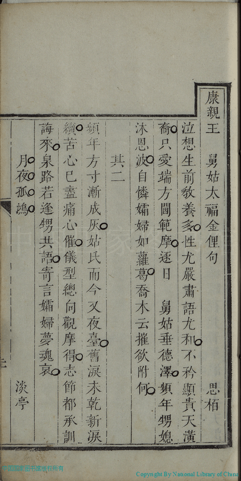 詩詞 [恭輓康親王舅姑太福金俚句(二首)]