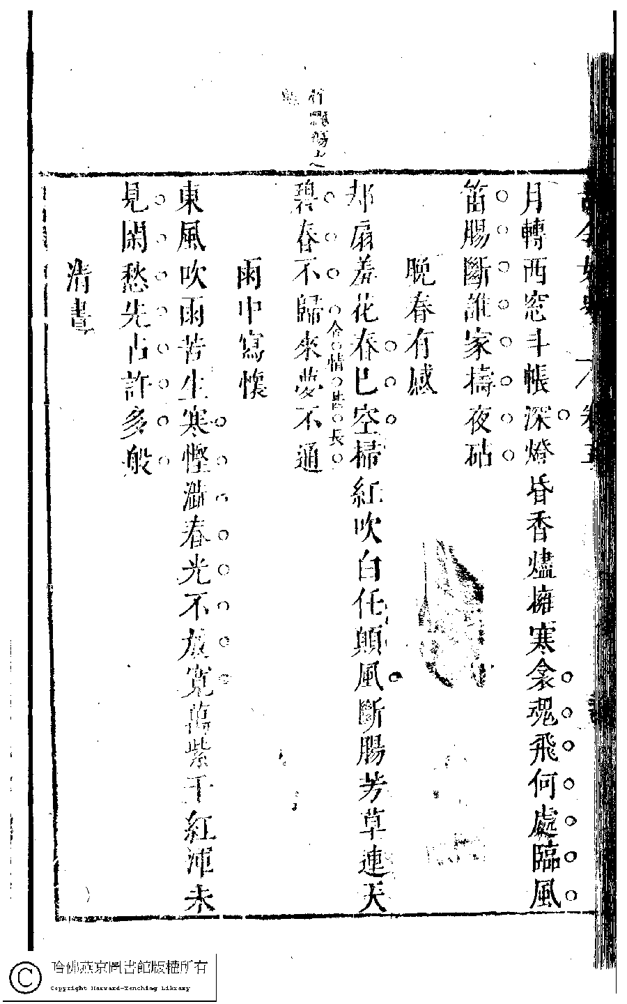 | (PRINT FRIENDLY VERSION) 古今女史﹕十二卷﹐詩集﹕八卷﹐附姓氏字里詳節﹕一卷(明趙世杰輯)。明崇禎(1628-1644)問奇閣刻本 ![]() 頁碼 : 5.37b | 点 击 放 大 | 返回 |