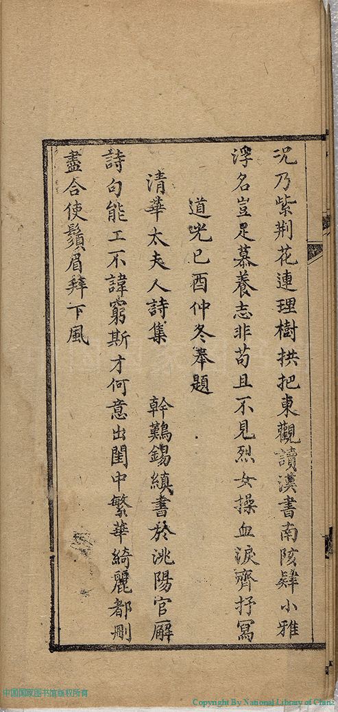 | (PRINT FRIENDLY VERSION) 燼餘詩稿:一卷(清徐清華撰)。清同治十三年(1874)刻本 ![]() 頁碼 : 題辭.2a | 点 击 放 大 | 燼餘詩稿:一卷(清徐清華撰)。清同治十三年(1874)刻本![]() 頁碼 : 題辭.1b | 点 击 放 大 | 返回 |