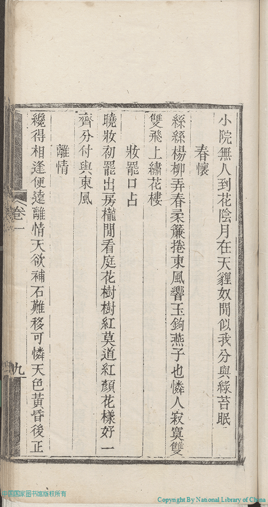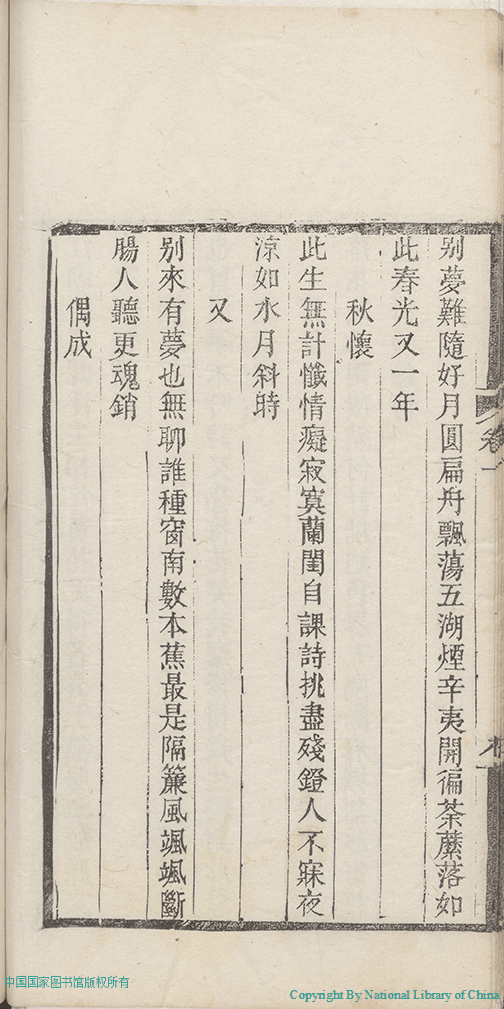 | (PRINT FRIENDLY VERSION) 歲寒吟:二卷,附詩餘(清彭若梅撰)。清光緒27年(1901)江右述經樓刻本 ![]() 頁碼 : 1.9a | 点 击 放 大 | 歲寒吟:二卷,附詩餘(清彭若梅撰)。清光緒27年(1901)江右述經樓刻本 ![]() 頁碼 : 1.8b | 点 击 放 大 | 返回 |