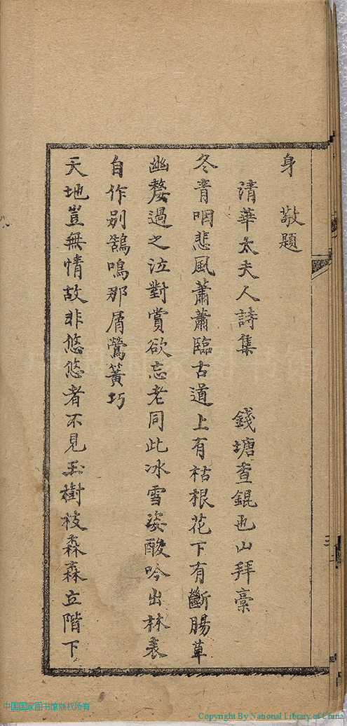 | (PRINT FRIENDLY VERSION) 燼餘詩稿:一卷(清徐清華撰)。清同治十三年(1874)刻本 ![]() 頁碼 : 題辭.4a | 点 击 放 大 | 燼餘詩稿:一卷(清徐清華撰)。清同治十三年(1874)刻本![]() 頁碼 : 題辭.3b | 点 击 放 大 | 返回 |