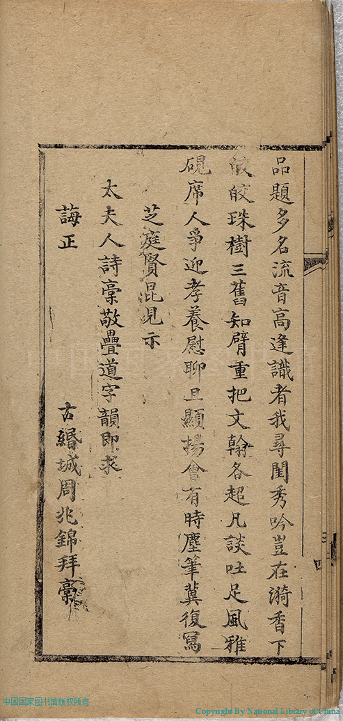 | (PRINT FRIENDLY VERSION) 燼餘詩稿:一卷(清徐清華撰)。清同治十三年(1874)刻本 ![]() 頁碼 : 題辭.4b | 点 击 放 大 | 燼餘詩稿:一卷(清徐清華撰)。清同治十三年(1874)刻本![]() 頁碼 : 題辭.4a | 点 击 放 大 | 返回 |