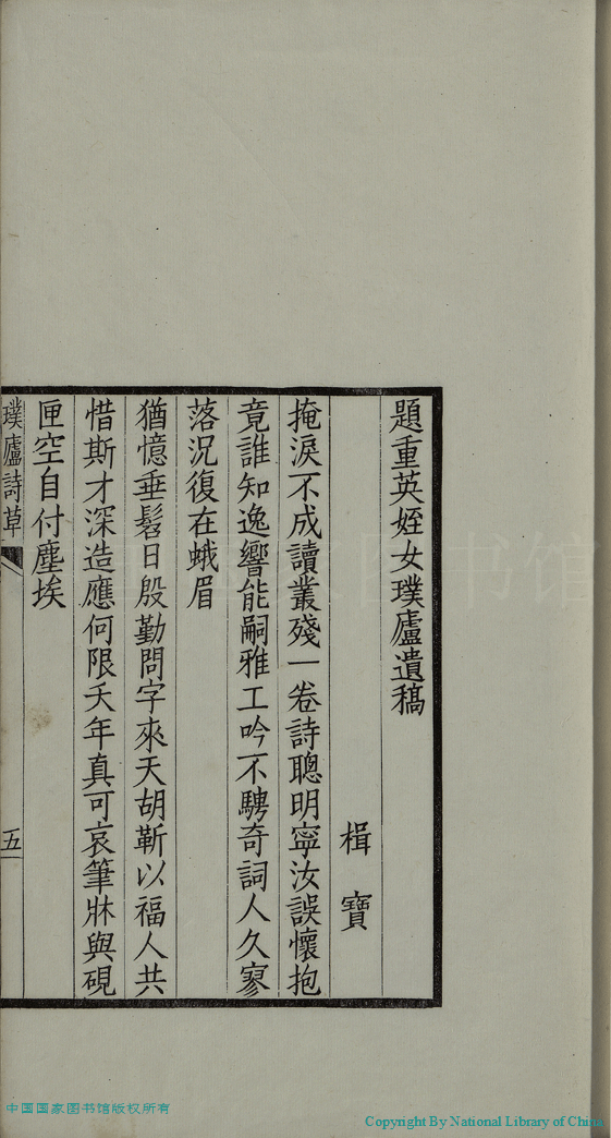 詩詞 [題重英姪女璞盧遺稿(二首)]