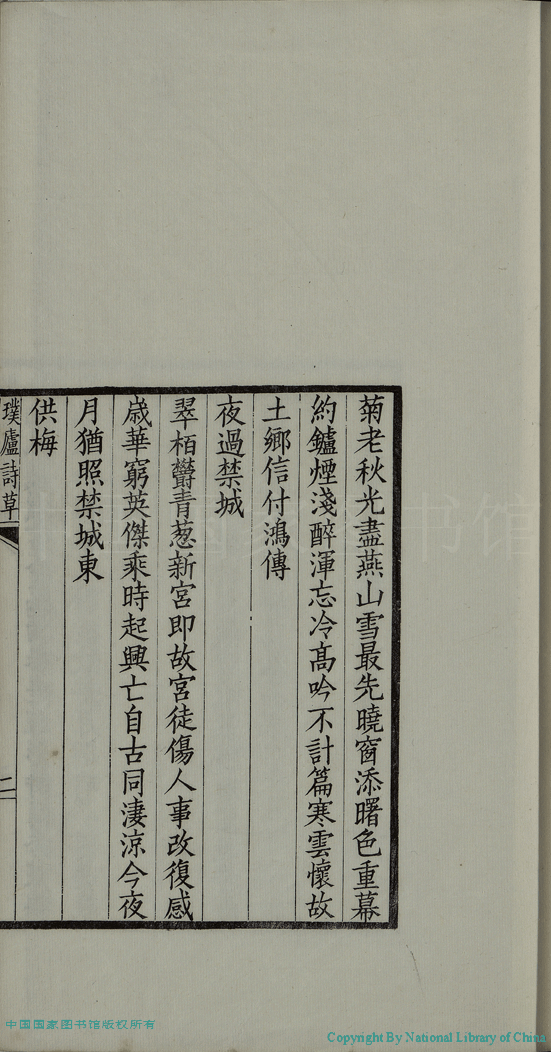 | (PRINT FRIENDLY VERSION) 璞廬詩草:一卷(清汪華熙撰) 。民國11年(1922)文楷齋刻本 ![]() 頁碼 : 詩.2b | 点 击 放 大 | 璞廬詩草:一卷(清汪華熙撰) 。民國11年(1922)文楷齋刻本![]() 頁碼 : 詩.2a | 点 击 放 大 | 返回 |