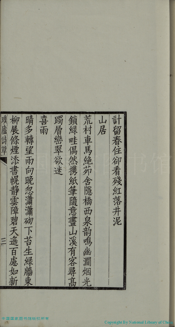 | (PRINT FRIENDLY VERSION) 璞廬詩草:一卷(清汪華熙撰) 。民國11年(1922)文楷齋刻本 ![]() 頁碼 : 詩.3a | 点 击 放 大 | 璞廬詩草:一卷(清汪華熙撰) 。民國11年(1922)文楷齋刻本![]() 頁碼 : 詩.2b | 点 击 放 大 | 返回 |