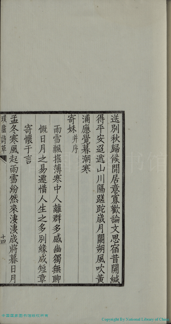 | (PRINT FRIENDLY VERSION) 璞廬詩草:一卷(清汪華熙撰) 。民國11年(1922)文楷齋刻本 ![]() 頁碼 : 詩.14a | 点 击 放 大 | 璞廬詩草:一卷(清汪華熙撰) 。民國11年(1922)文楷齋刻本![]() 頁碼 : 詩.13b | 点 击 放 大 | 返回 |