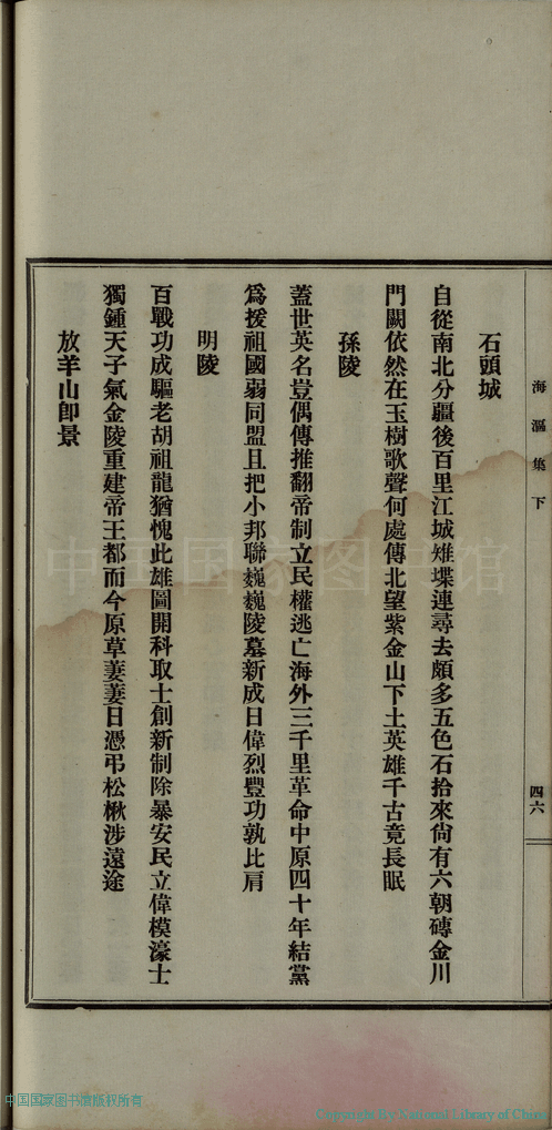 | (PRINT FRIENDLY VERSION) 海漚集:二卷(清張汝釗撰)。民國23年(1934)四明印局鉛印本 ![]() 頁碼 : 2.3b | 点 击 放 大 | 返回 |
