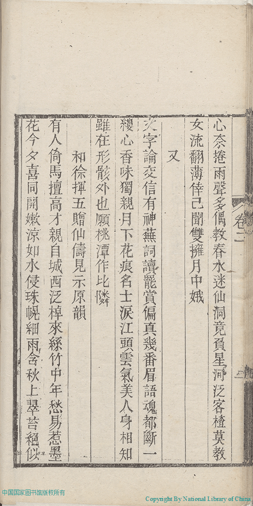 | (PRINT FRIENDLY VERSION) 歲寒吟:二卷,附詩餘(清彭若梅撰)。清光緒27年(1901)江右述經樓刻本 ![]() 頁碼 : 2.3a | 点 击 放 大 | 歲寒吟:二卷,附詩餘(清彭若梅撰)。清光緒27年(1901)江右述經樓刻本 ![]() 頁碼 : 2.2b | 点 击 放 大 | 返回 |