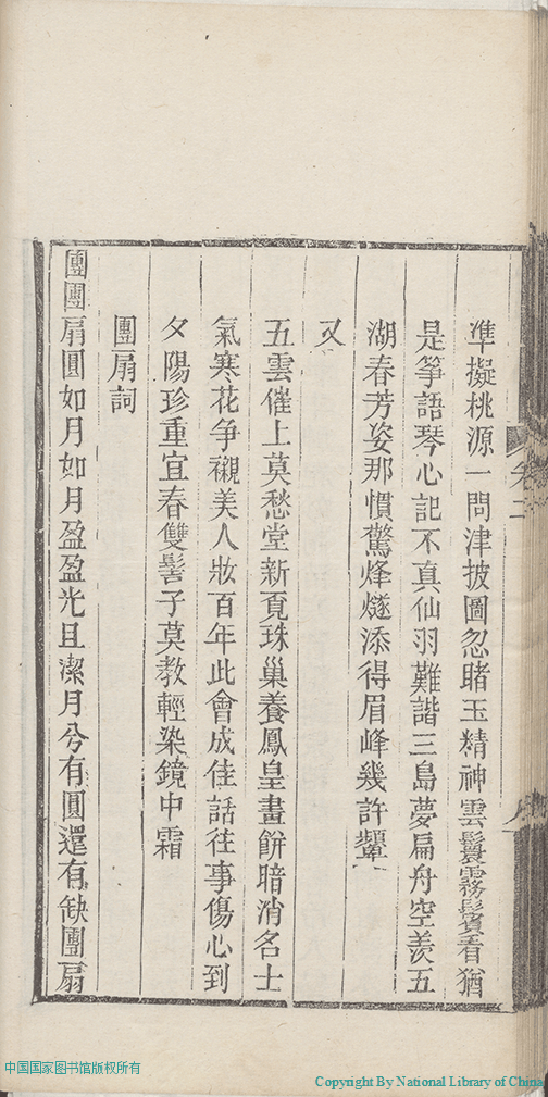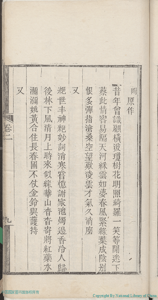 | (PRINT FRIENDLY VERSION) 歲寒吟:二卷,附詩餘(清彭若梅撰)。清光緒27年(1901)江右述經樓刻本 ![]() 頁碼 : 2.9b | 点 击 放 大 | 歲寒吟:二卷,附詩餘(清彭若梅撰)。清光緒27年(1901)江右述經樓刻本 ![]() 頁碼 : 2.9a | 点 击 放 大 | 返回 |
