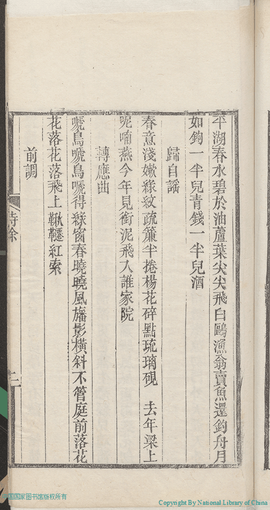 | (PRINT FRIENDLY VERSION) 歲寒吟:二卷,附詩餘(清彭若梅撰)。清光緒27年(1901)江右述經樓刻本 ![]() 頁碼 : 詩餘.2a | 点 击 放 大 | 返回 |