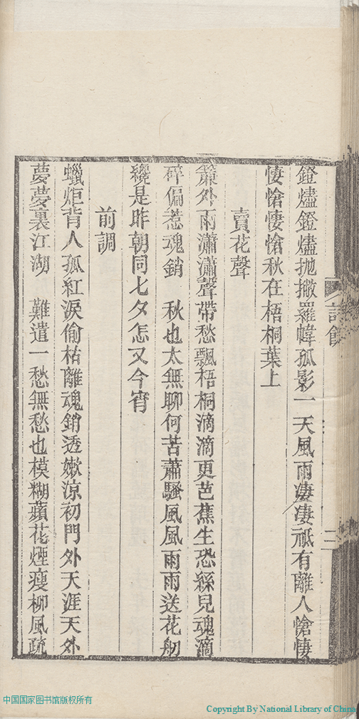 | (PRINT FRIENDLY VERSION) 歲寒吟:二卷,附詩餘(清彭若梅撰)。清光緒27年(1901)江右述經樓刻本 ![]() 頁碼 : 詩餘.2b | 点 击 放 大 | 返回 |