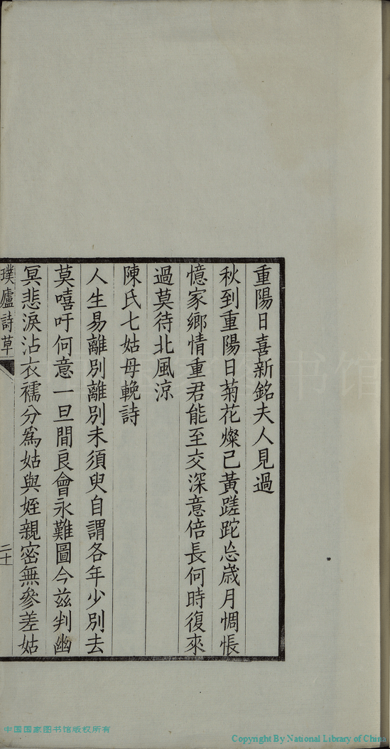 | (PRINT FRIENDLY VERSION) 璞廬詩草:一卷(清汪華熙撰) 。民國11年(1922)文楷齋刻本 ![]() 頁碼 : 詩.20a | 点 击 放 大 | 返回 |
